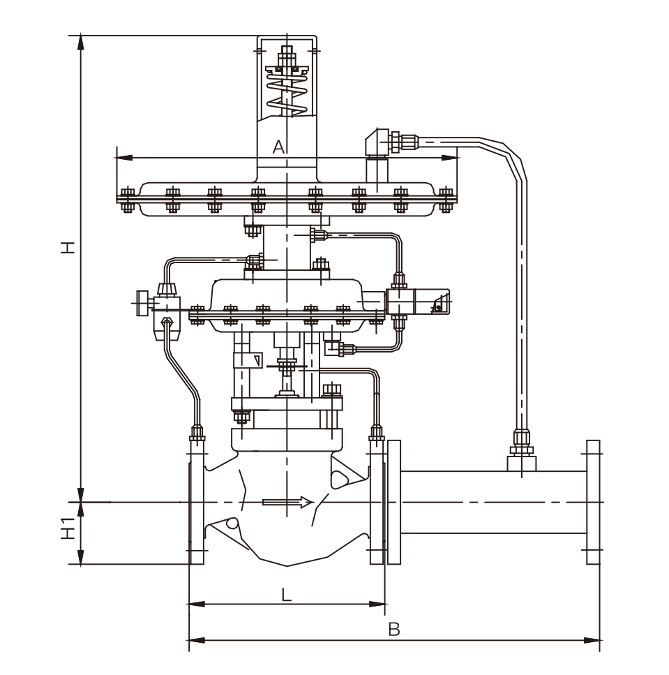自力式帶指揮器壓力調節閥(即氮封裝置)主要用于儲罐頂部氮氣壓力恒定控制,自力式氮封閥是一種無須外來能源,以彈簧為動力核心利用被調介質自身的壓力來控制閥芯位置變化,達到自動調節和穩定壓力的目的,以保護罐內物料不被氮化及儲罐的安全。該閥由ZZYVP快速泄放閥及ZZV自力式微壓調節閥兩大部分組成。快速泄放閥由壓力控制器及ZMQ-16K型單座切斷閥組成。