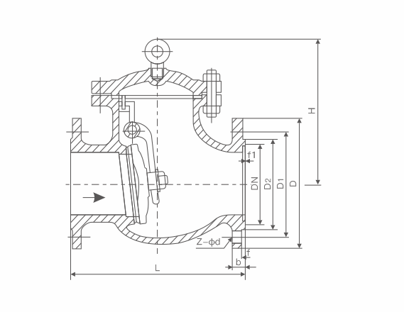 國標旋啟式止回閥采用內裝搖臂旋啟式結構,閥門的所有啟閉件都裝于閥體內部,不穿透閥體,除了中法蘭部位用密封墊片和密封環外,整體沒有外漏點,杜絕閥門外泄的可能。搖臂和閥瓣連接處采用球面連接的結構,使得閥瓣在360度范圍內有一定的自由度,有適當的微量位置補償。廣泛應用于化工、冶金、制藥等多個領域。